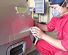 凹み傷の場合は、凹み部分をスタッドという溶着引張機などを使い、出来るだけ表面を元の状態に修復します。